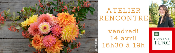 EXCLUSIF : nous vous proposons un atelier-rencontre « Spécial Dahlias » avec Aude, de l’entreprise Ernest Turc, le vendredi 14 avril à 16h30 à Hortelli.